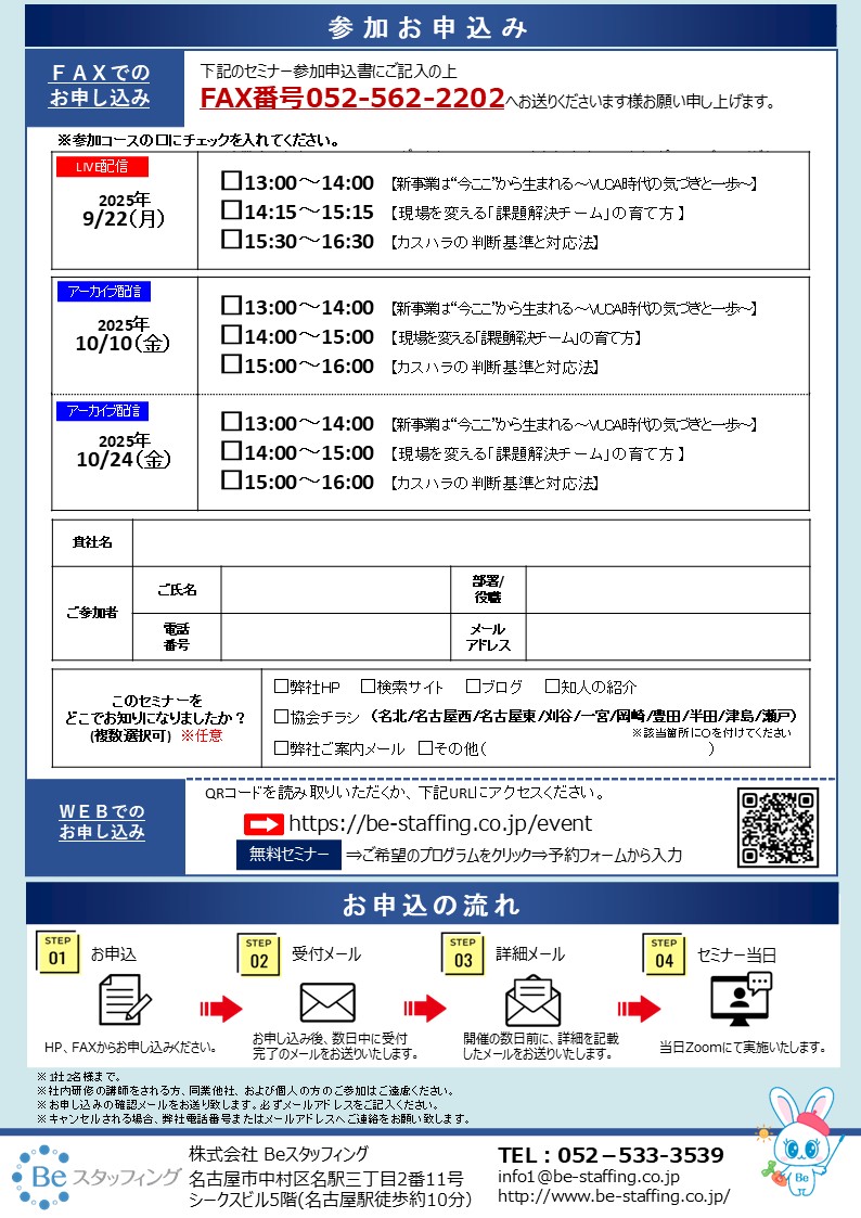 ※※※Beスタッフィングは新入社員研修から管理職研修、メンタルヘルス・ハラスメント研修などの企業研修と
