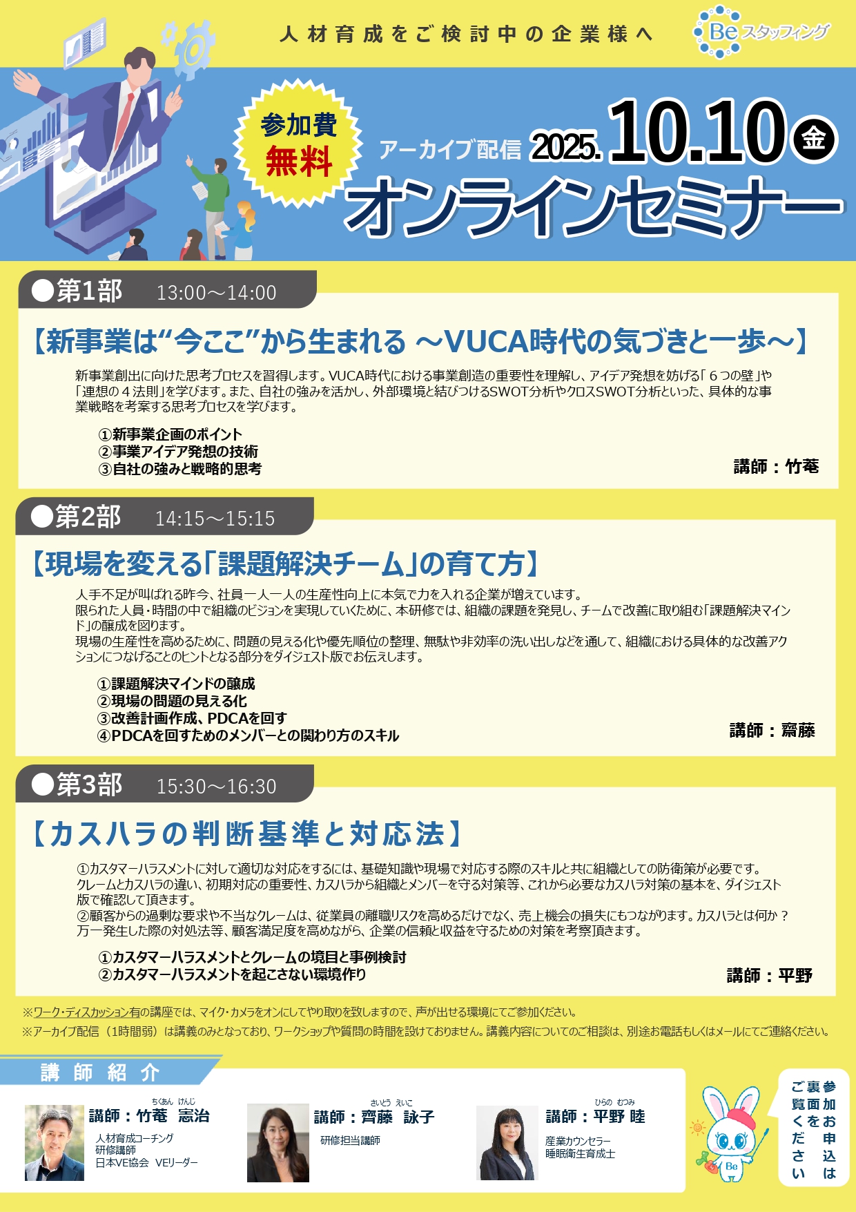 【オンライン開催】10月無料セミナー・アーカイブ配信のご案内